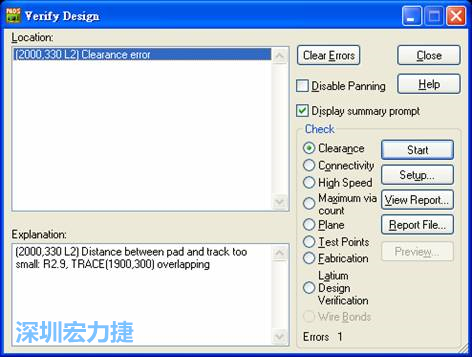 圖41 驗(yàn)證PCB設(shè)計(jì)彈窗列出錯(cuò)誤的地方